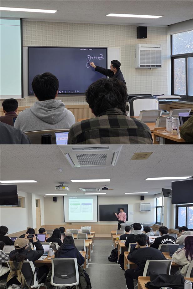 11월 14일 첫 세미나에서 서중원 교수는 ‘블록체인 기초 및 응용실습’을 주제로 특강을 진행했다. 학생들은 블록체인의 기본 원리와 보안 구조를 학습하고, 실습을 통해 분산 원장 기술에 대한 이해를 넓히는 시간을 가졌다.